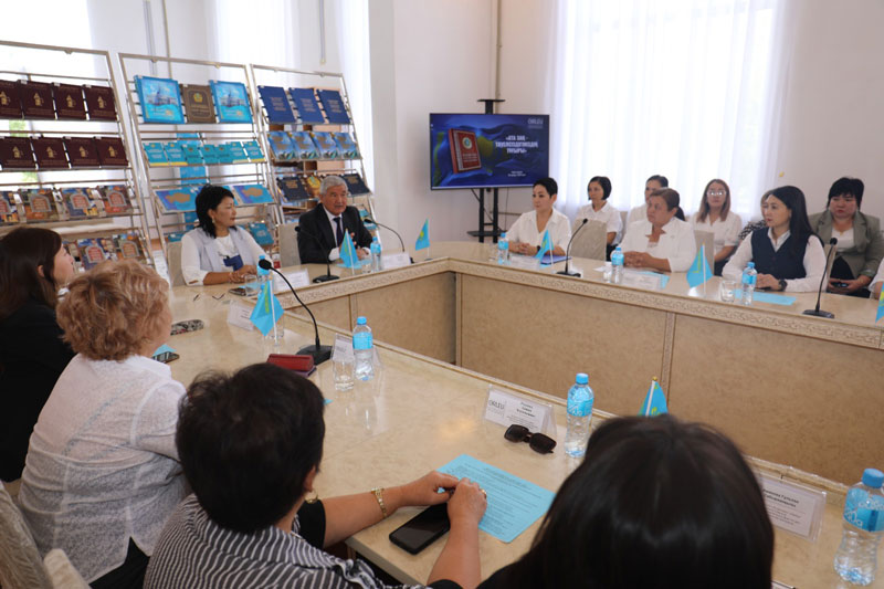 «Біртұтас тәрбие» бағдарламасы – ұлттық, адами құндылықтарға негіздеу» тақырыбында баяндама оқылды, «Ұрпақтар сабақтастығы» туралы интерактивті дәріс әңгіме өрбіді. Аталған іс-шарада Ш.Уәлиханов атындағы Жамбыл облыстық әмбебап кітапханасының ұйымдастырған кітап көрмесі де болды. Еліміздің патриоттық әндері шырқалды.