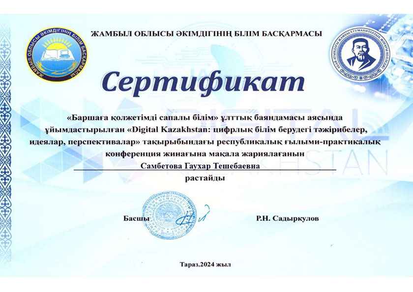 2024 жылдың 8 қарашасы Абай атындағы Жамбыл гуманитарлық жоғары колледжі» ұйымдастыруымен «Digital Kazakhstan: цифрлық білім берудегі тәжірибелер, идеялар, перспективалар» тақырыбындағы республикалық ғылыми-практикалық конференциясы өткізді.